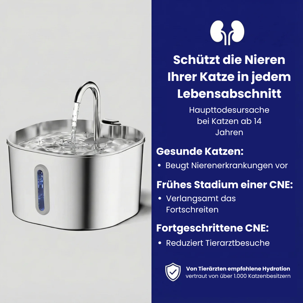 Das Ergebnis: Ihre Katze trinkt über den ganzen Tag mehr, bleibt optimal hydriert und reduziert das Risiko gefährlicher Harn- und Nierenprobleme.
